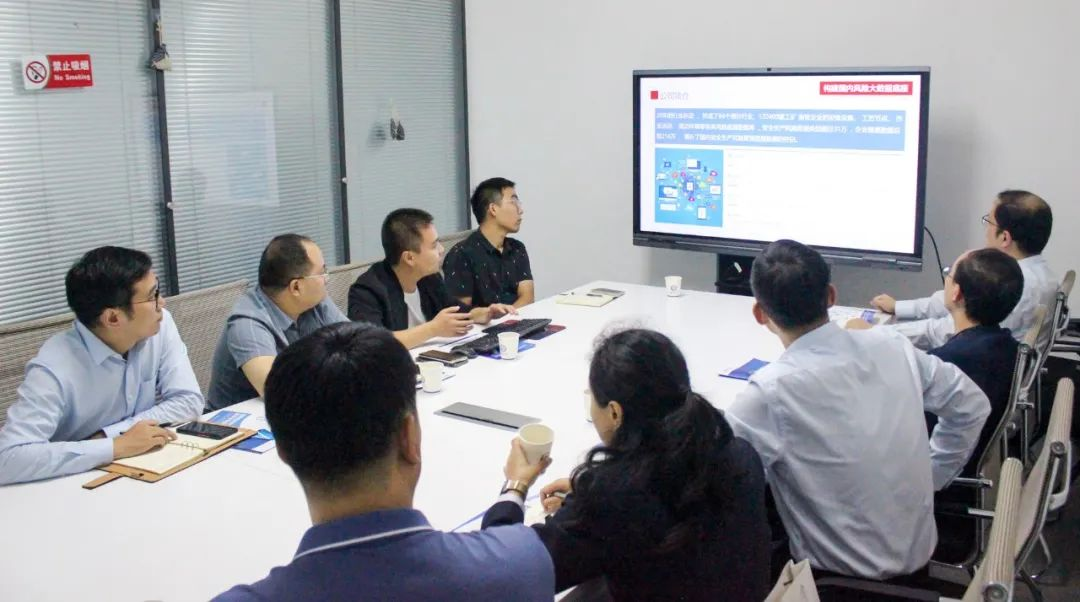 随后,双方进行了座谈交流,永安保险一行领导深入了解了公司发展历程、科研实力以及安环家 安责险事故预防业务交易(支撑)云平台(以下简称“安环家平台”)的建设背景、底层逻辑、核心技术、功能亮点、核心价值,对于安环家平台倡导”撮合交易、综合赋能、深度服务”的理念深表赞同,对安环家提出的“真”事故预防服务表示出浓厚兴趣,并就安责险落地实施和合作共赢展开了热烈讨论。
